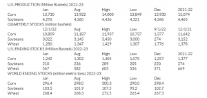 The United States Department of Agriculture released the January World Agricultural Supply & Demand Estimates (WASDE) report yesterday. The expected reductions in use were met with notable changes to U.S. production, resulting in lower-than-expected ending stocks for the 2022/23 marketing year. As compared to the December WASDE report, a 200 million bushel drop in total production was spurred …