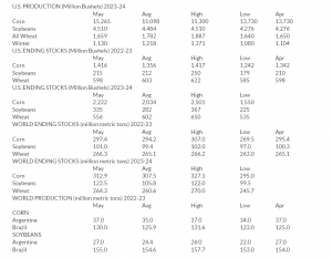 As expected by the grain trade, USDA on Wednesday lowered corn export demand 75 million bushels (mb) and also bumped up ending stocks for the crop by 75 mb as well. USDA trimmed soybean ending stocks to 210 mb, 15 mb from last month’s estimate. USDA lowered its crush estimate by 10 mb but raised …