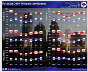 Well it looks as if the heat dome has settled above Oklahoma over the next week. According to State Climatolgoist Gary McManus we will see high heat index values up into the 110’s off and on over the next five days. McManus says while it is hot this week, there is some hope for change, …