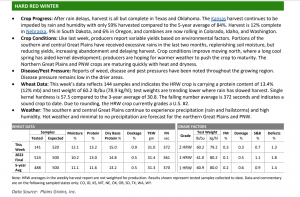 Despite delays due to rain and humidity, HRW harvest is now progressing in 9 states with data from 141 samples included in this week’s report. The SRW harvest is steadily progressing and is more than 80% complete. The PNW continues to trend hot and dry as harvest begins on SW winter wheat. Cooler temperatures across …