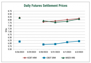 Following the U.S. Memorial Day holiday on May 29, wheat futures ended the week mixed. Futures dipped mid-week, with some contracts reaching lows not seen since 2020. July 2023 CBOT soft red winter (SRW) futures were up 3 cents on the week, closing at $6.19/bu after touching a 30-month low on Tuesday. KCBT HRW futures …