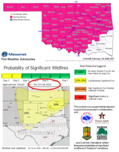 Large wildfires continue to impact parts of northwestern Oklahoma and the Panhandle, with over 300,000 combined acres burned and a state of emergency in effect for Beaver, Texas, and Woodward counties. While dry and dangerous conditions persist today, February 19, 2026, fire spread potential is expected to be slightly lower than earlier in the week. …